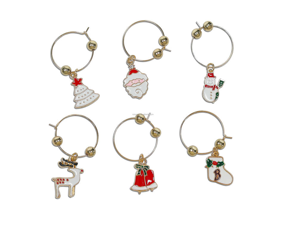 Dijes de copa de vino de Navidad Etiquetas de bebida de vino de vacaciones festivas Aleación de zinc Accesorios de fiesta de temporada para decoraciones de mesa
