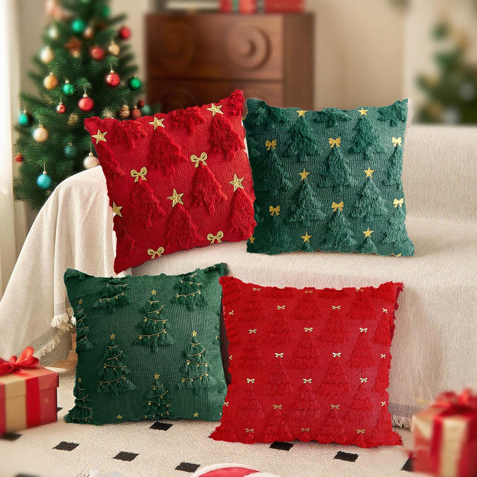 Funda de almohada navideña de felpa bordada, funda de cojín para sofá de sala de estar, decoración para fiestas navideñas