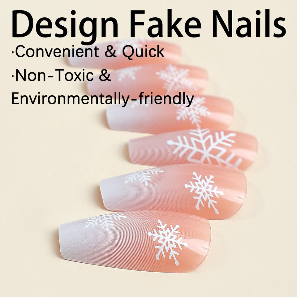 Estilo navideño Europeo y americano Pastel rosa y blanco Gradiente Patrón de copo de nieve Francés Press-on Nails Ins Uñas postizas