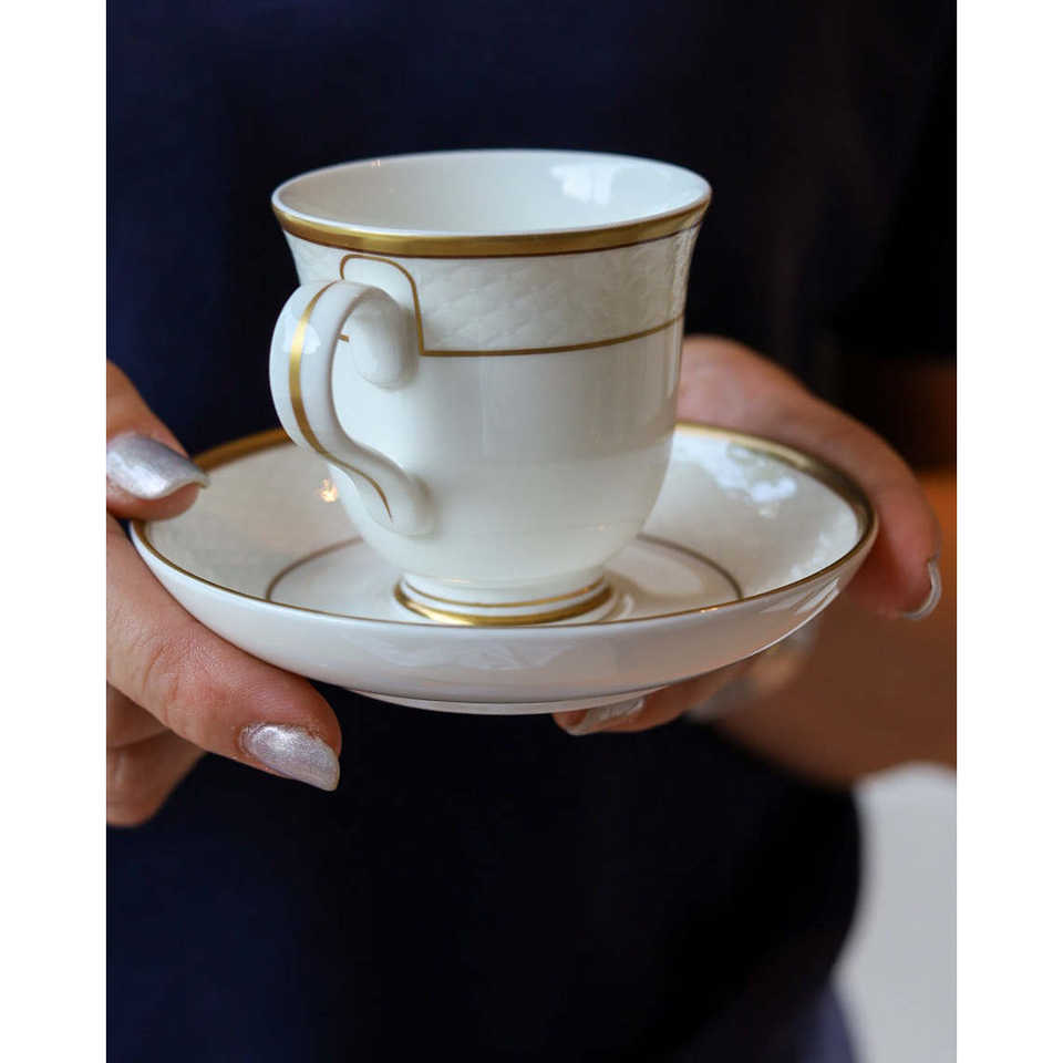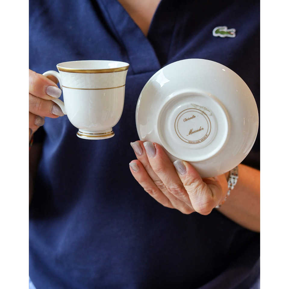 Juego de 6 Tazas de Café de Porcelana Decoradas con Messidor de Christofle, Diseño Europeo y Árabe de Lujo Hecho a Mano para Hoteles