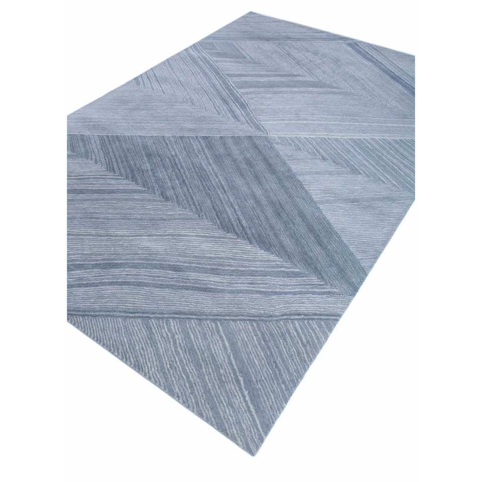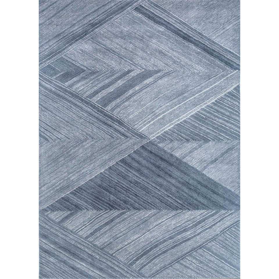 Alfombra de Lana Tejida a Mano con Patrón Geométrico Azul Cromático, Rectangular de 9x12, para Sala de Estar, Modelo Top-293, Grosor de 10 mm, Viscosa