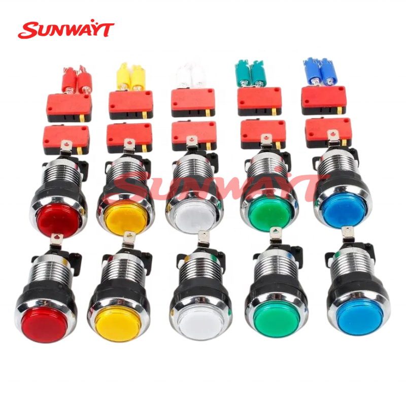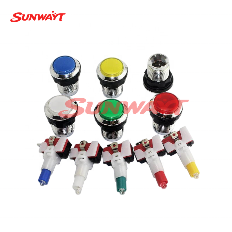 Botones pulsadores cromados de 33 mm con microinterruptor LED de 12 V para máquinas recreativas que funcionan con monedas