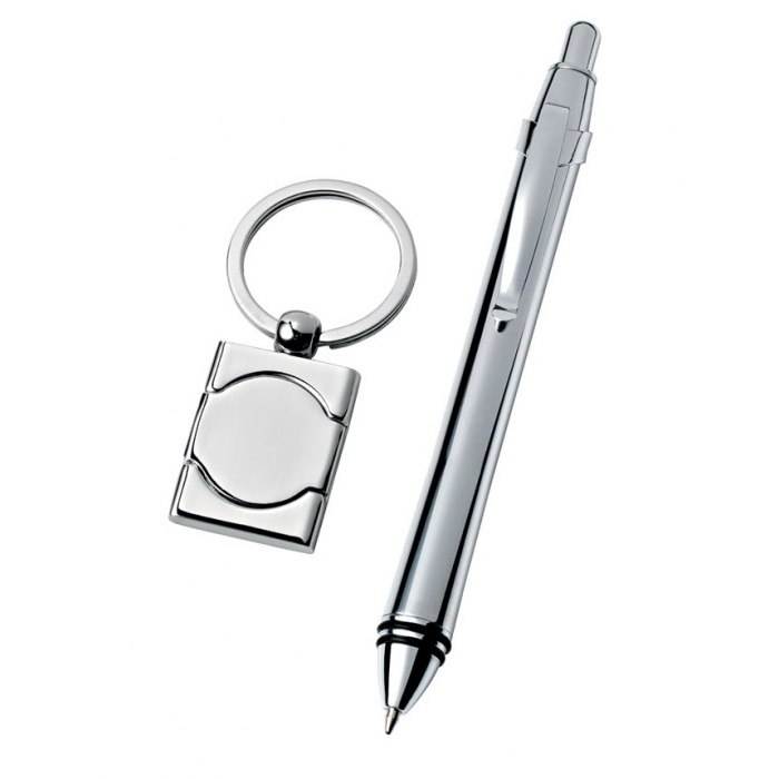 Juego de bolígrafo cromado y llavero en caja de regalo, instrumento de escritura premium con anillo metálico para hombres, regalos de negocios.