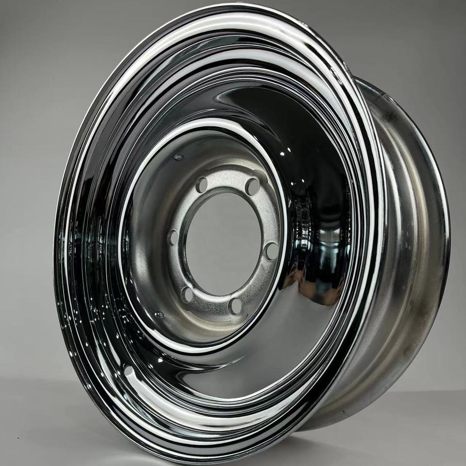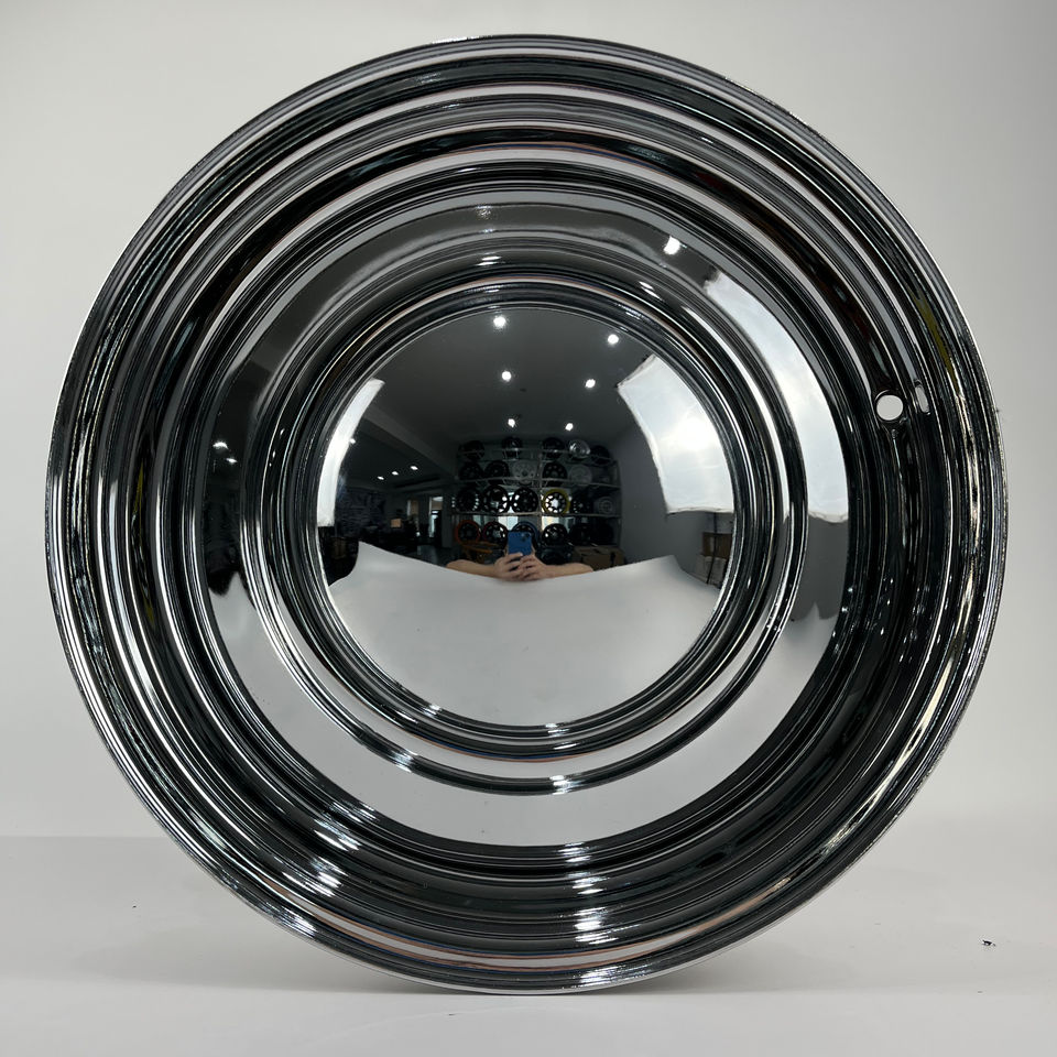 Acabado cromado: El acabado cromado proporciona una superficie duradera y resistente a la corrosión, asegurando que las ruedas mantengan su apariencia con el tiempo.