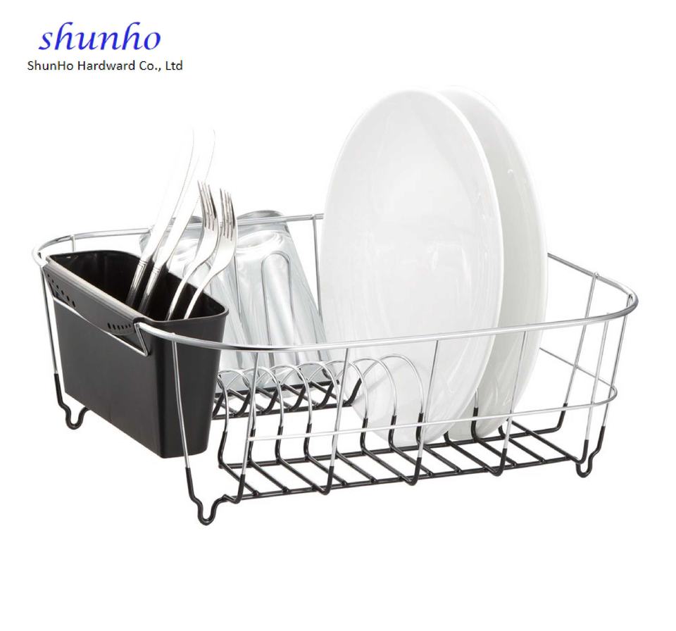Escurridor de platos pequeño de acero con revestimiento de PVC negro cromado