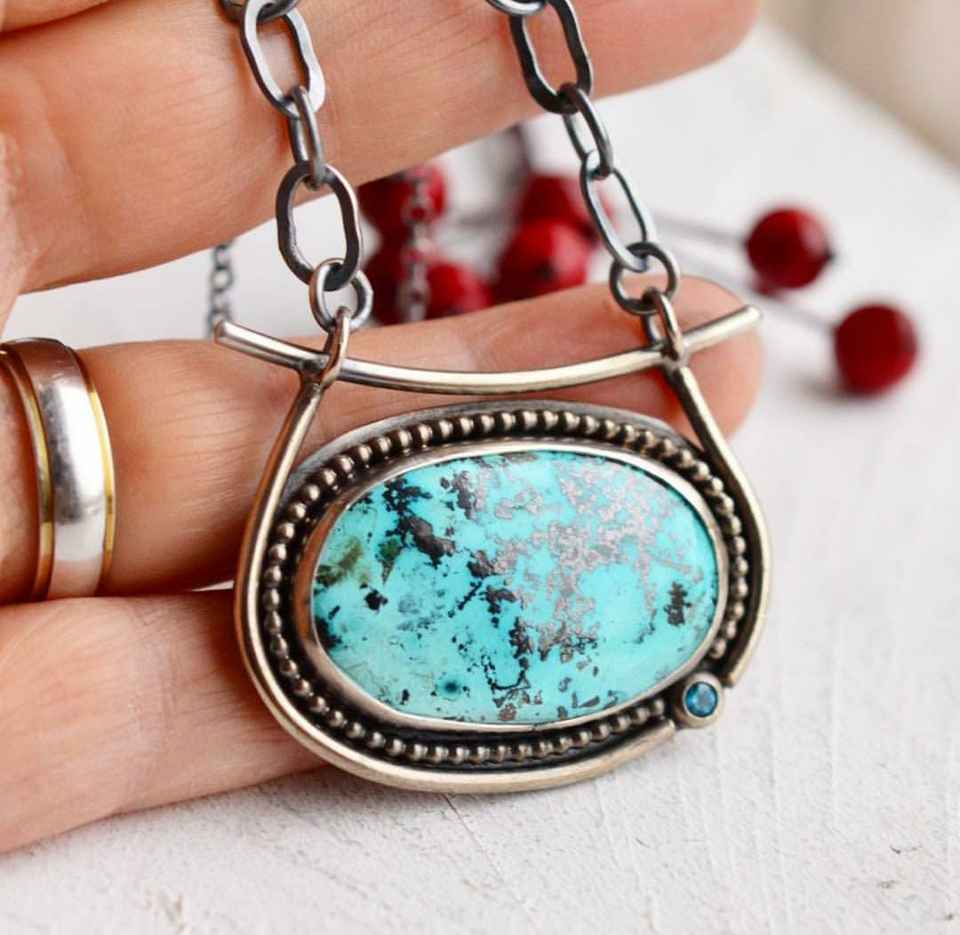 Palabra clave:Chrysocolla Natural Gemstone Colgante Plata Declaración Joyería