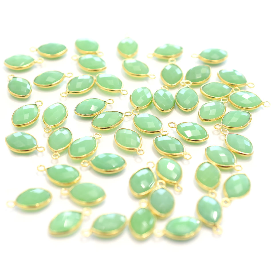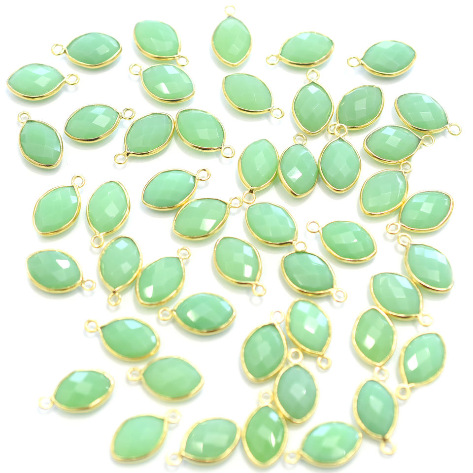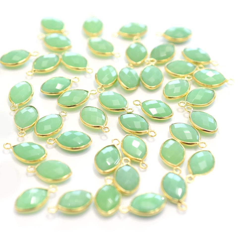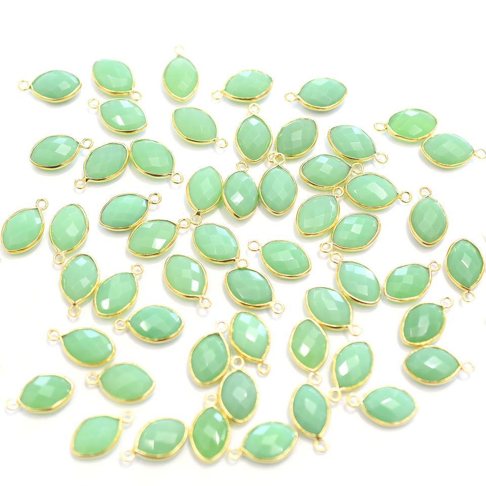 Nombre del Producto:Colgante Chapado en Oro con Bisel Plateado y Forma Marquesa de Crisoprasa Calcedonia