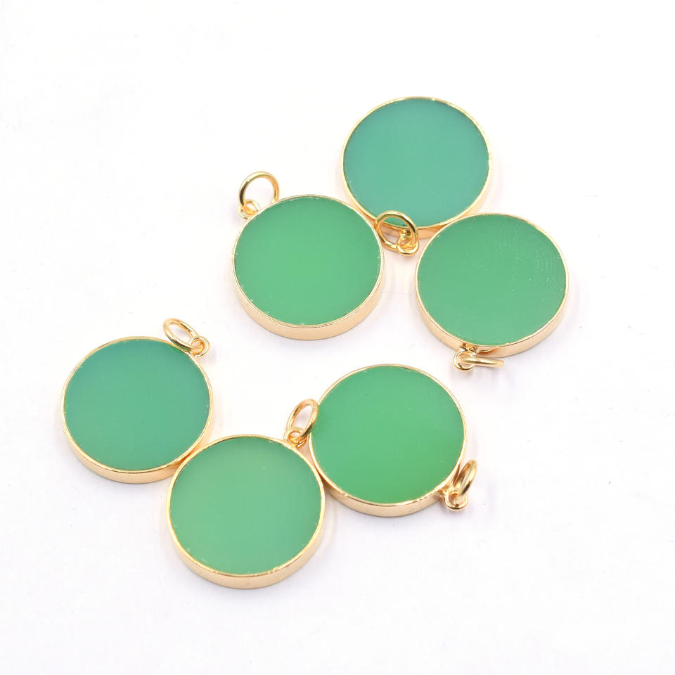 Crisoprasa Calcedonia Forma redonda 925 Bisel de plata esterlina Colgante chapado en oro Fabricación de joyas hechas a mano