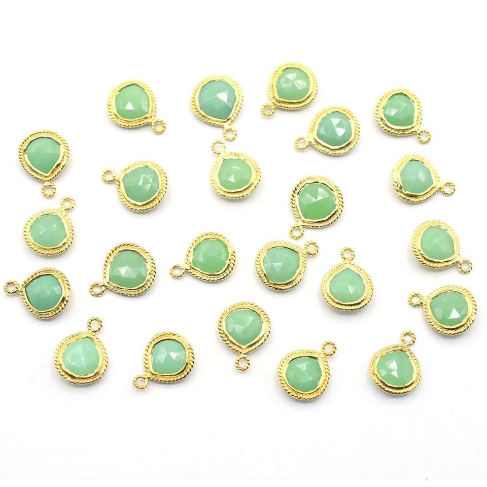 Nombre del Producto:Colgante de chalcedonia crisoprasa en forma de corazón con bisel de plata y baño de oro.