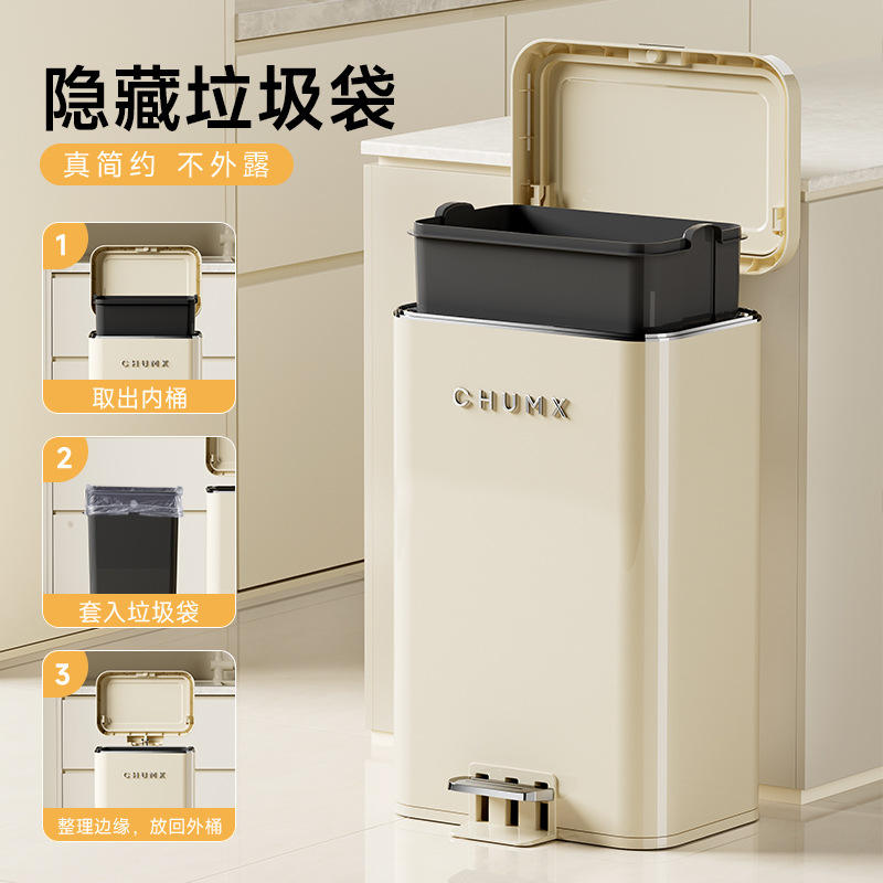 Cubo de Basura Chumx con Pedal, 10L, Silencioso, Tapa Doble, para Uso en Interiores