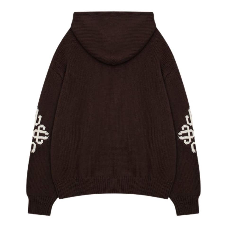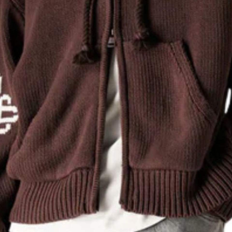 Sudadera con Capucha de Punto Grueso con Cierre y Emblema Bordado en Color Marrón Chocolate, Sudadera de Punto Elegante y Cómoda, Perfecta para el Día a Día