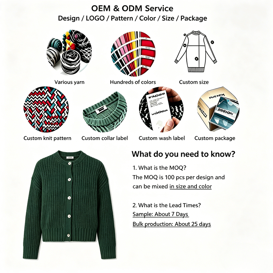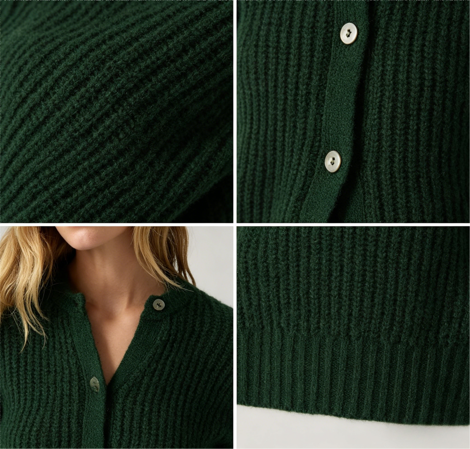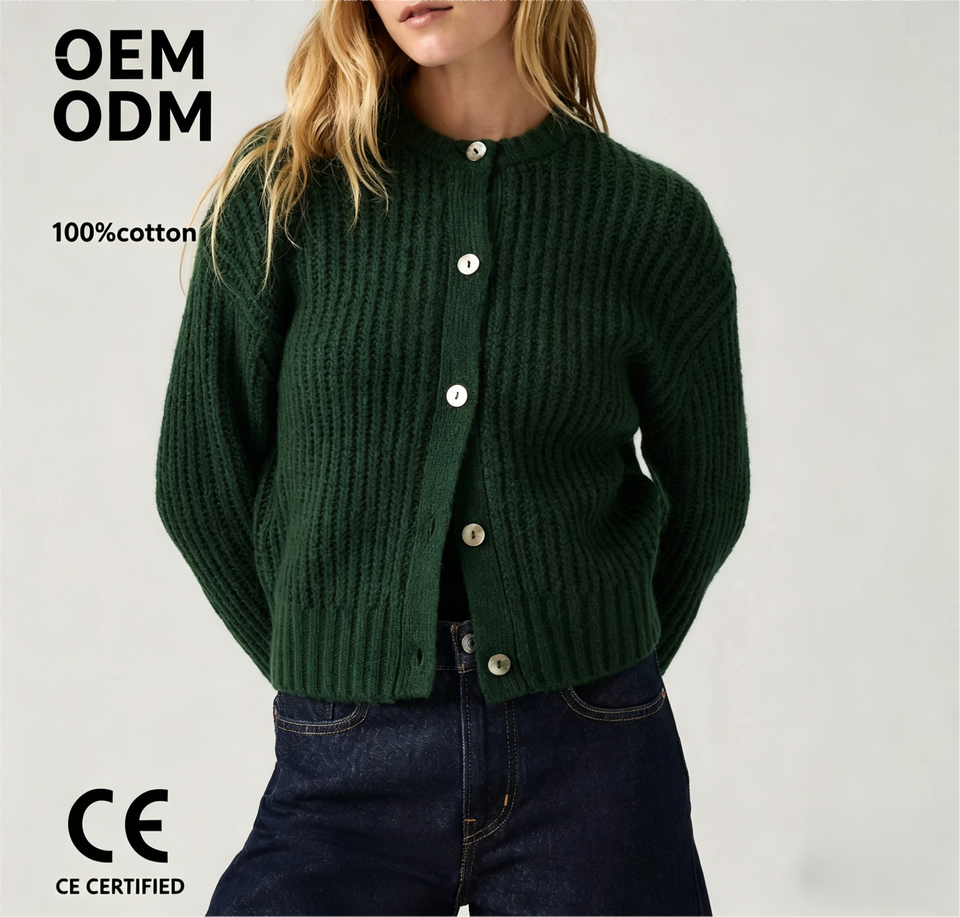 Cárdigan de Punto Acanalado Grueso para Mujer, OEM ODM Personalizado, 100% Algodón, Cuello Redondo, Abotonado, Informal, para Uso Diario