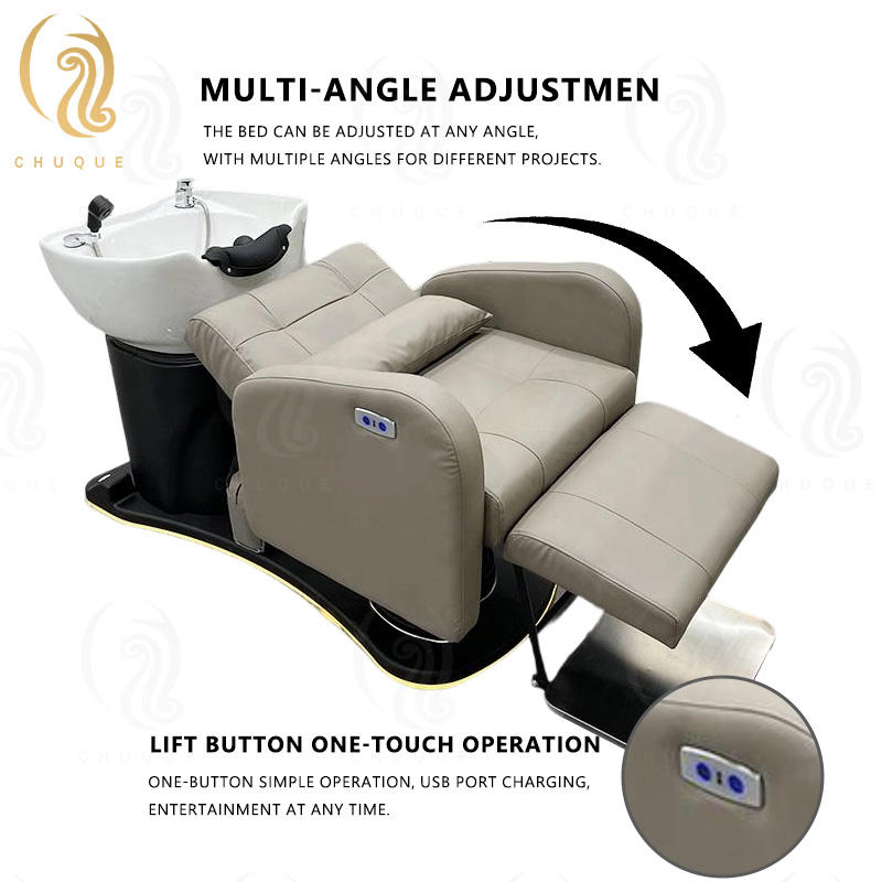 Sillón de Lavado de Cabello Giratorio Moderno Chuque, el Más Vendido, con Lavabo de Cerámica para Salón de Belleza y Barbería