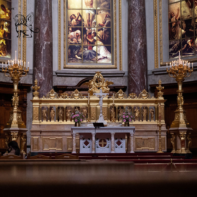 Candelabro Grande de Metal para Iglesia, Candelabro Religioso de Cobre para Casa Sagrada, Altar de Mármol, Tabernáculo de Bronce con Estatuas de Santos