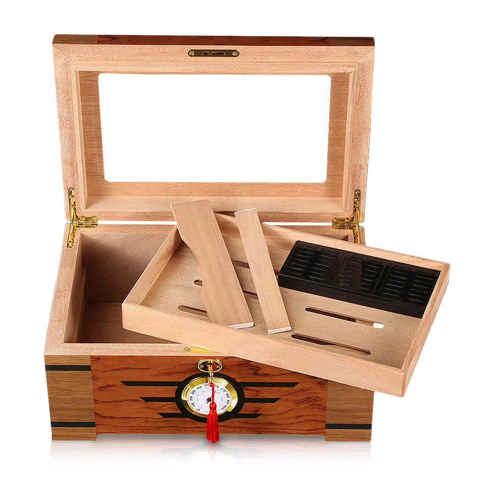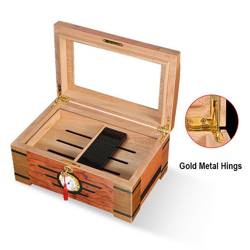 Caja de cigarros con humidificador e higrómetro, caja de madera de cedro, Cubana