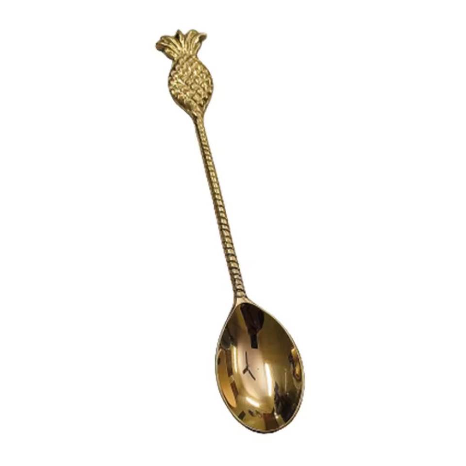 Cuchara de Barra Corta de Latón Hecha a Mano con Diseño Circular y Acabado Dorado en Relieve, Accesorios de Cocina