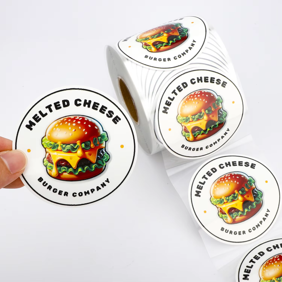 Etiqueta circular para cocina, logotipo personalizado, etiqueta de papel para alimentos, caja de Hamburgo, embalaje impermeable, pegatina para restaurante de hamburguesas para pequeñas empresas