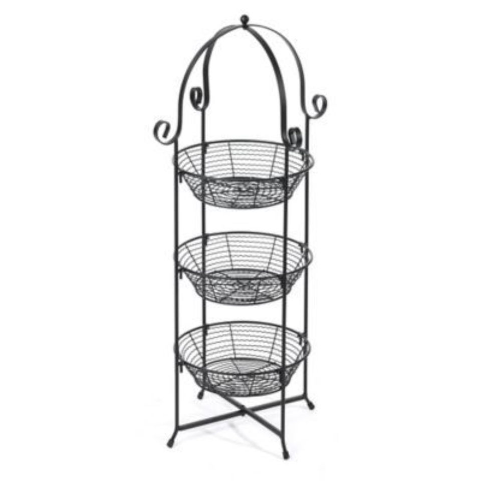Cesta de Almacenamiento de Alambre Metálico en Forma de Círculo de 3 Niveles, Color Negro, para Uso en el Hogar y la Cocina, Cesta de Encimera con Asas