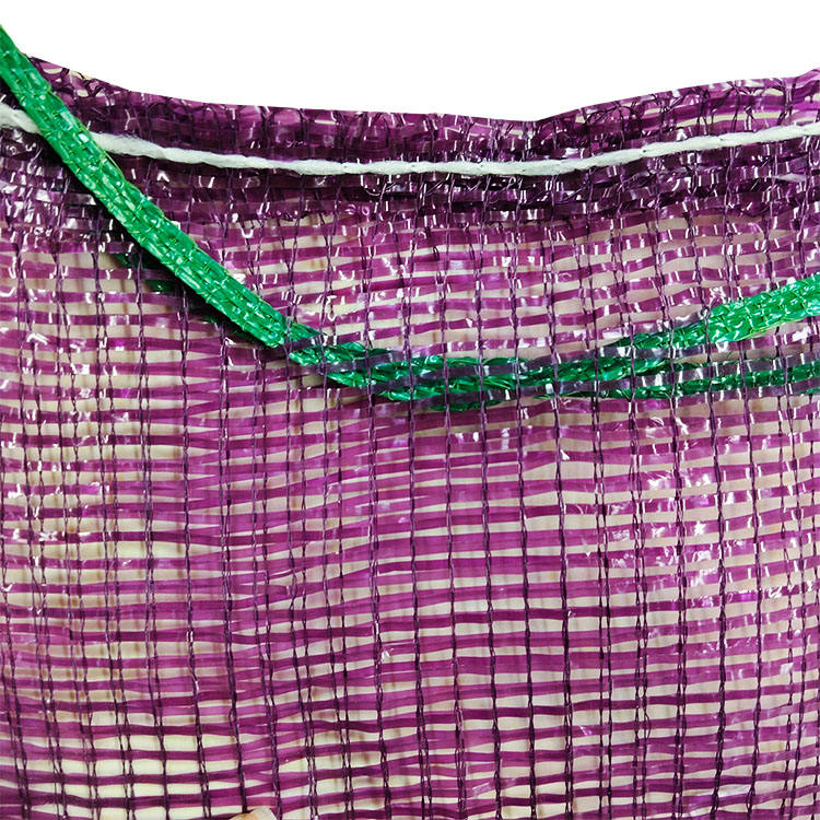 Saco de red de frutas de punto circular, bolsa con cordón de malla de PP para frutas vegetales, cebollas y patatas, productos de embalaje e impresión