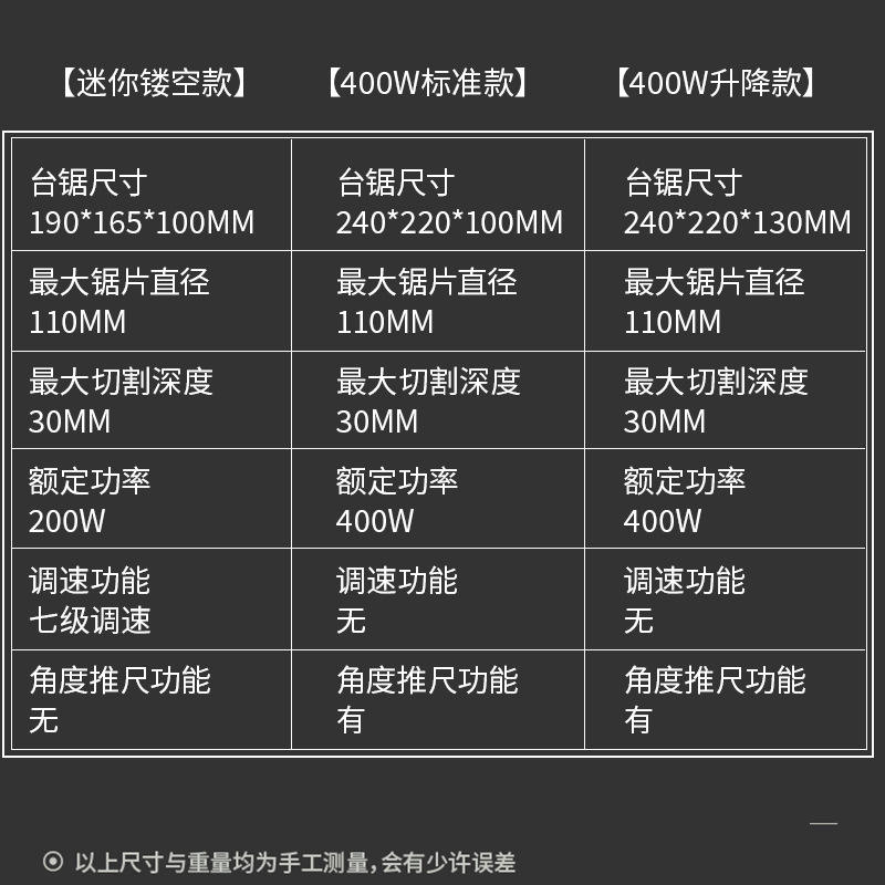 modelo: Configuración estándar de sierra de mesa de 400W