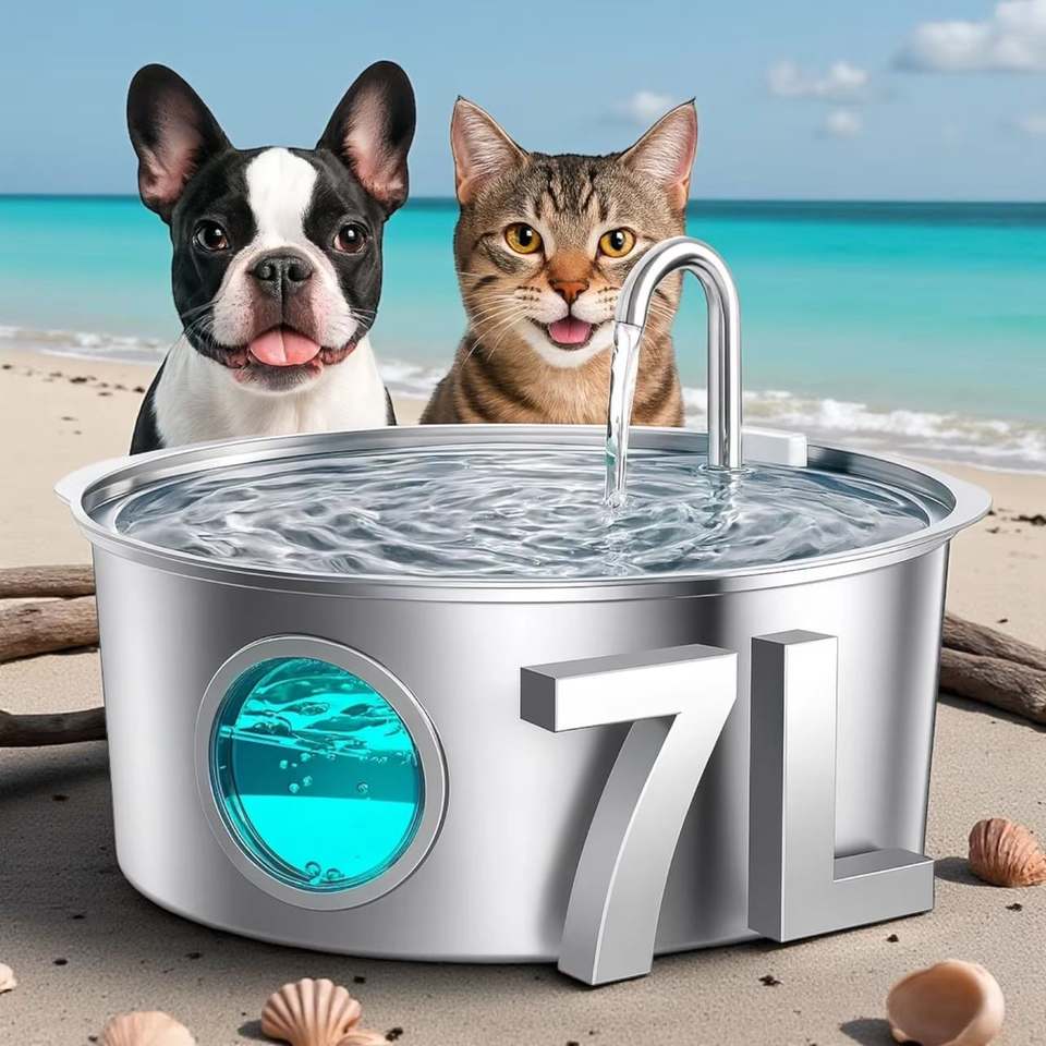 7L pet water fountain, stainless steel cat water fountain
