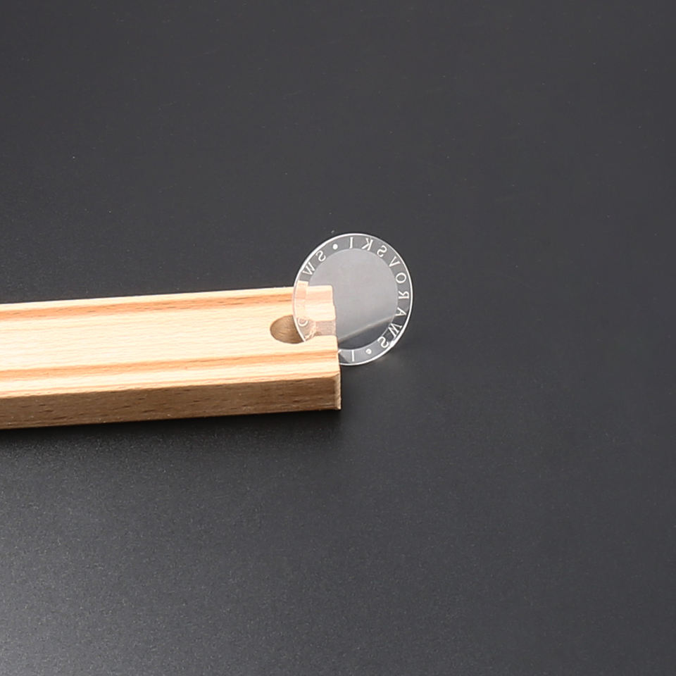 Nombre del producto:Cristal de zafiro circular para reloj con serigrafía de texto.