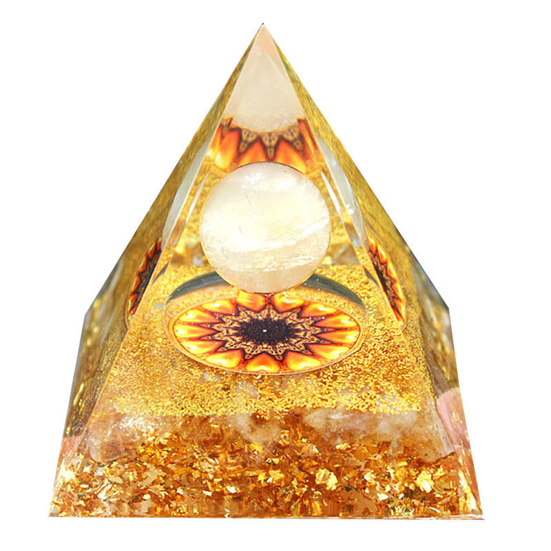 Pirámide de Resina Epoxi con Virutas de Citrino, Adorno de Escritorio, Cristal Amarillo, Girasol, Feng Shui, Decoración para Sala de Estar