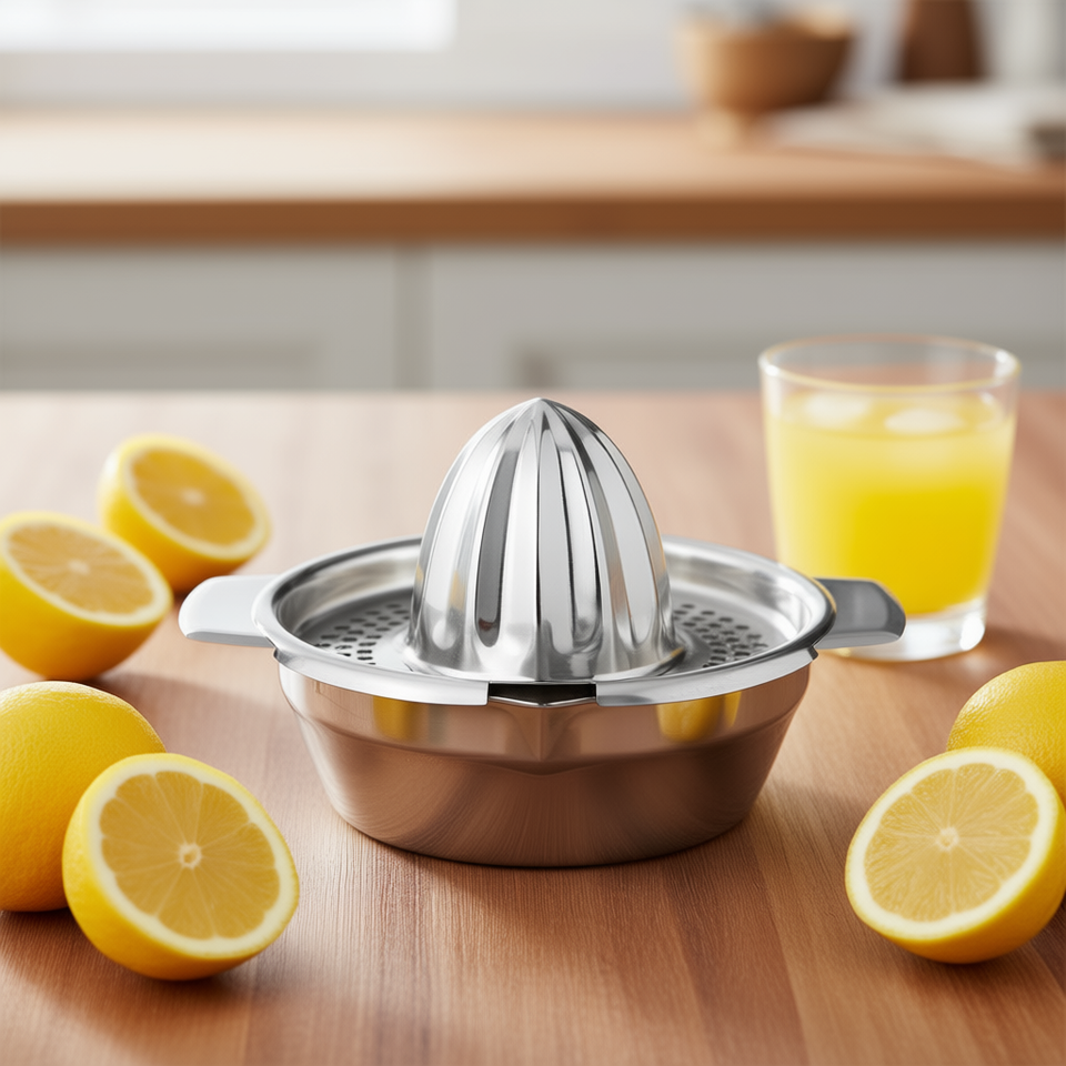 Exprimidor de cítricos con bandeja recolectora, exprimidor manual de acero inoxidable para cítricos