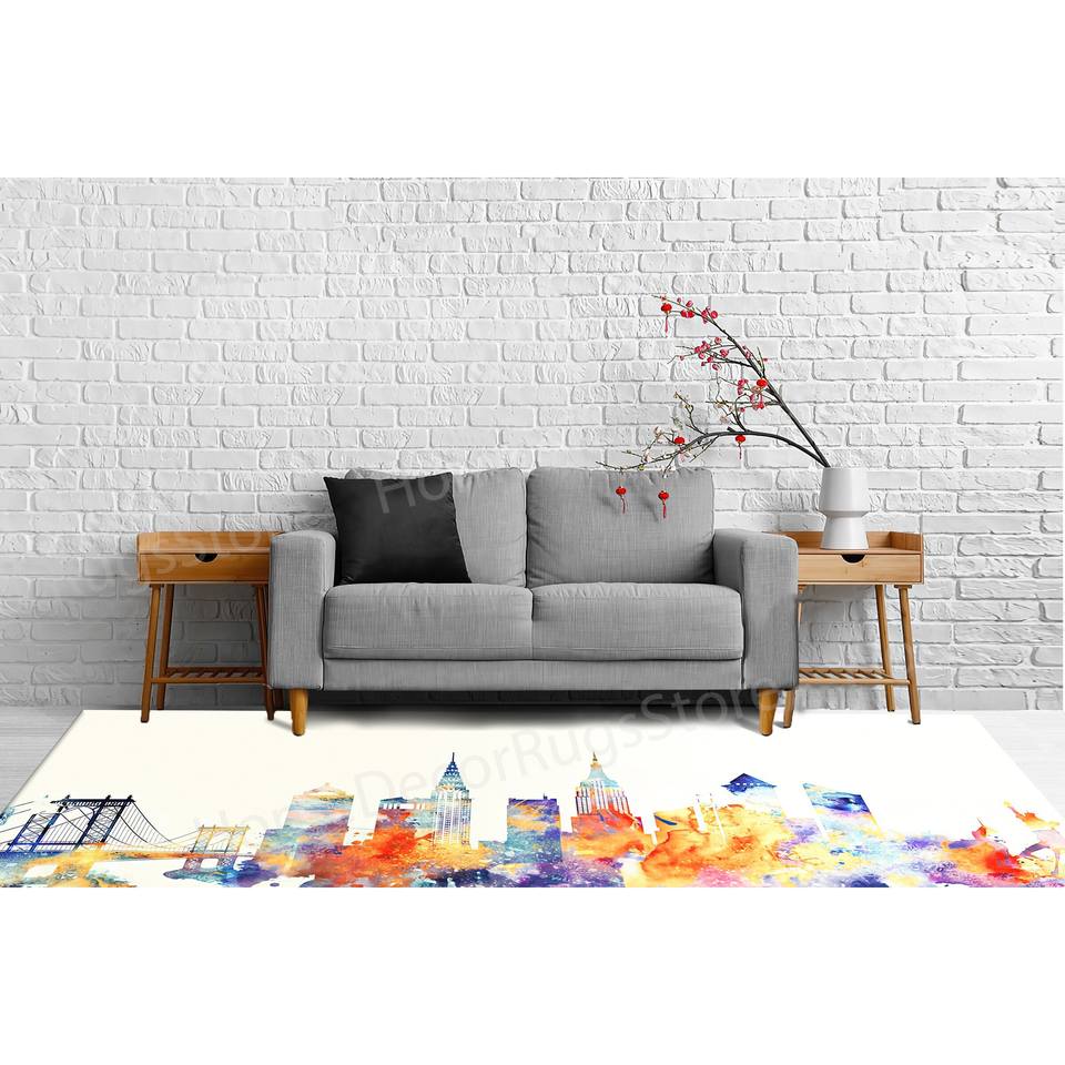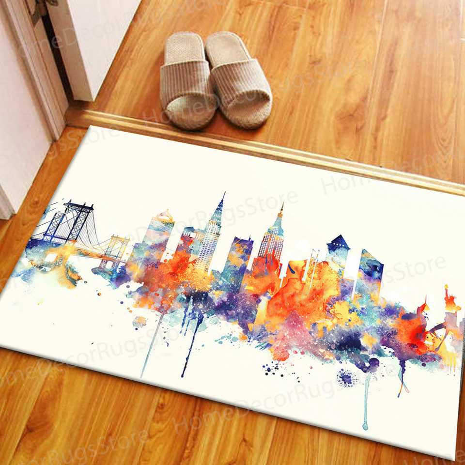 Alfombra con Estampado de Paisaje Urbano - Decoración de Oficina, Salón, Abstracta, Acuarela, Exterior, Alfombra de Chenilla