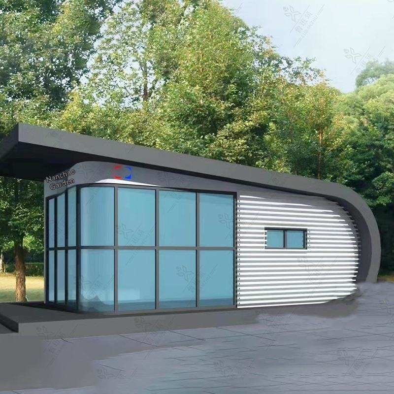 Estación de Servicio Urbana Sunny House: Estructura de Acero Inoxidable, Almacenamiento Minorista, Compartición Inteligente, Modular, Fácil Instalación y Manejo de Motores.