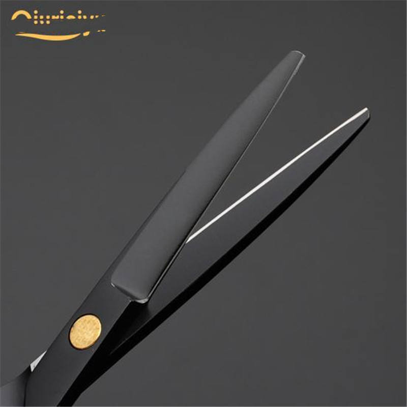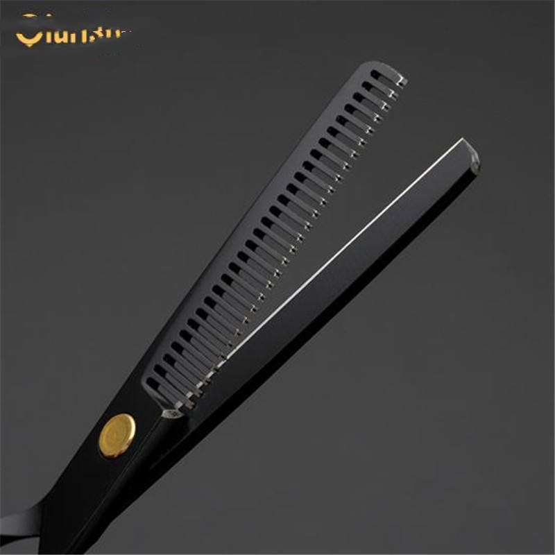 Tijeras de peluquería Ciwinter de 5.5 pulgadas, negras, cromadas, para entresacar, de acero inoxidable, con hoja afilada, para uso estético, mango corto