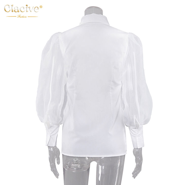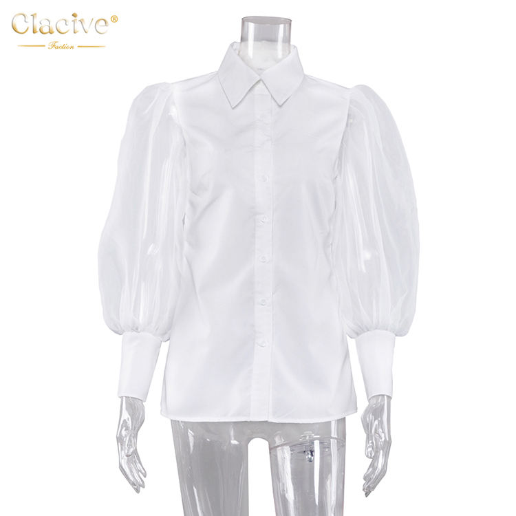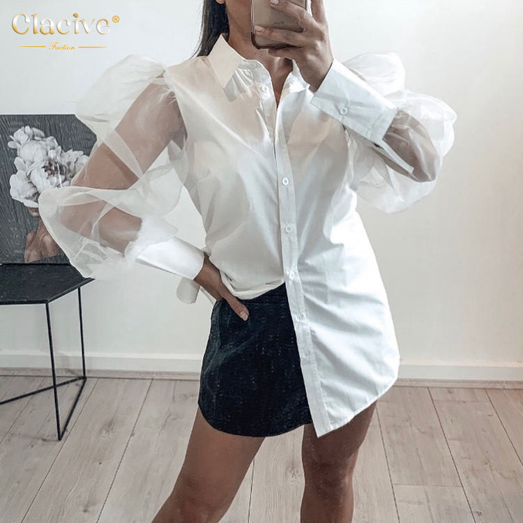 Clacive 2020 nueva llegada Ropa de Mujer Ropa de Organza de malla de manga larga bocanada camisas casuales para mujeres blusas