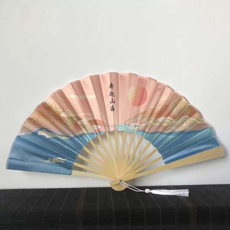 Ventilador de Bambú Ecológico Clack de 13 Pulgadas, Decoración Tradicional para el Hogar, Pintado a Mano, con Música para Año Nuevo, Navidad, Halloween, Sublimación