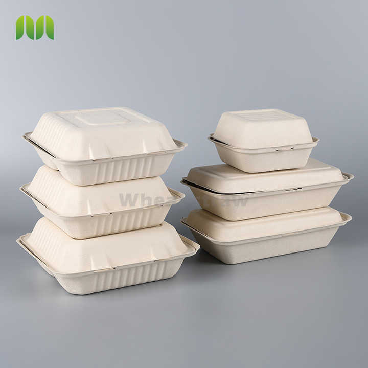 Clamshell-Caja Biodegradable de comida para llevar, contenedor de pulpa de papel para almuerzo, bagazo de caña de azúcar, vajilla desechable
