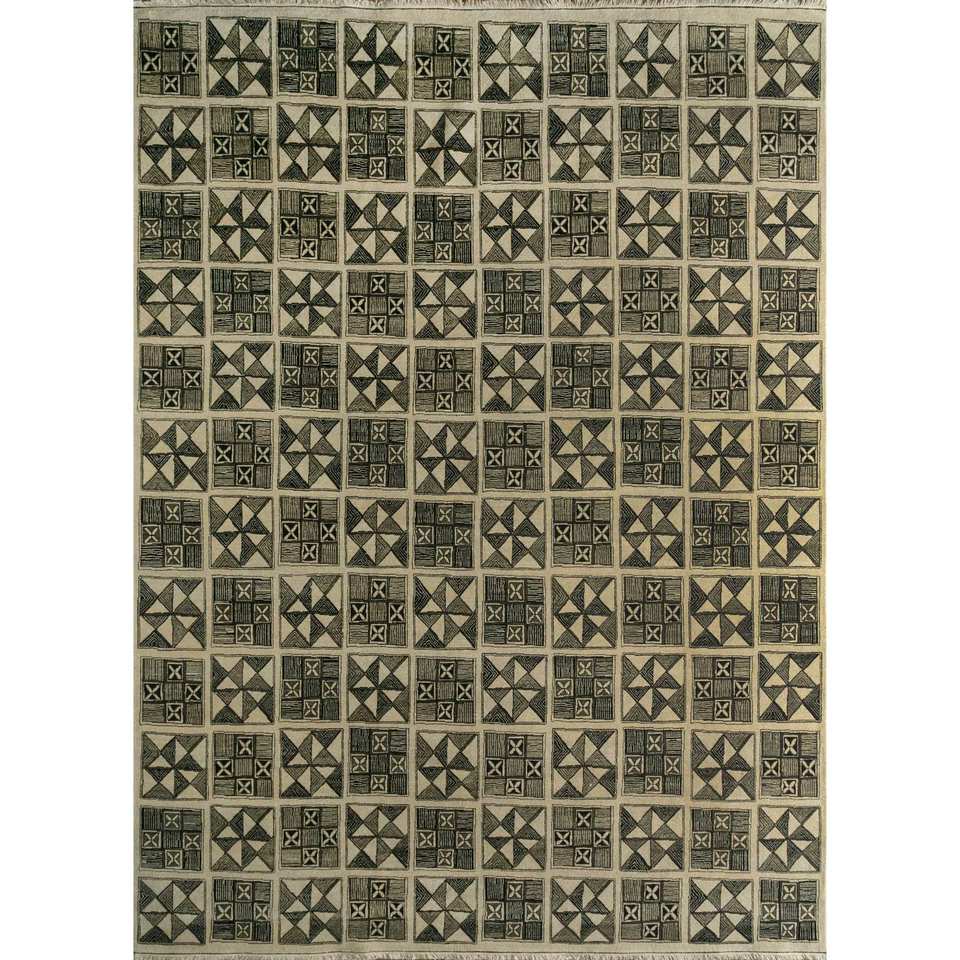 Alfombra de Lana Anudada a Mano Clan Ivory, Diseño Geométrico, Gran Tamaño 9x12, para Decoración de Sala de Estar y Pasillo, SKWL-69