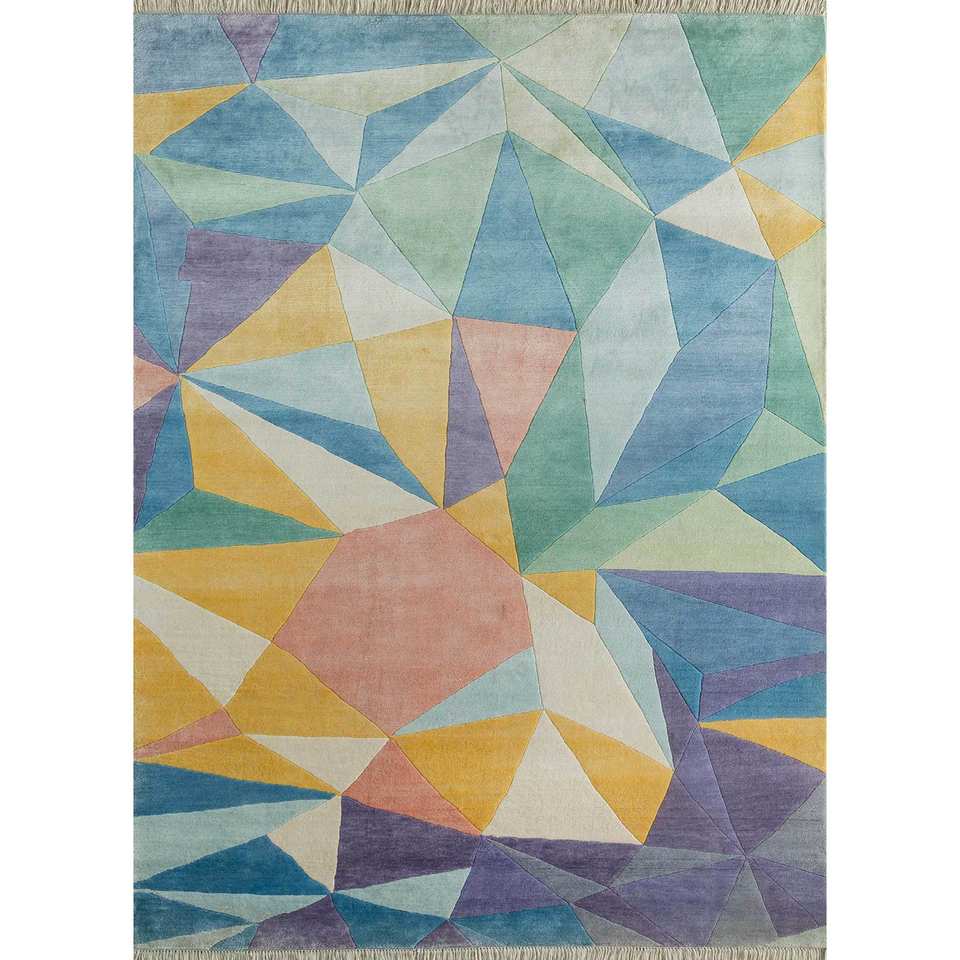 Alfombra Rectangular de Diseño Geométrico con Nudos a Mano, Modelo Tencil, para Sala de Estar, Pasillo, para Adolescentes -Sits-01