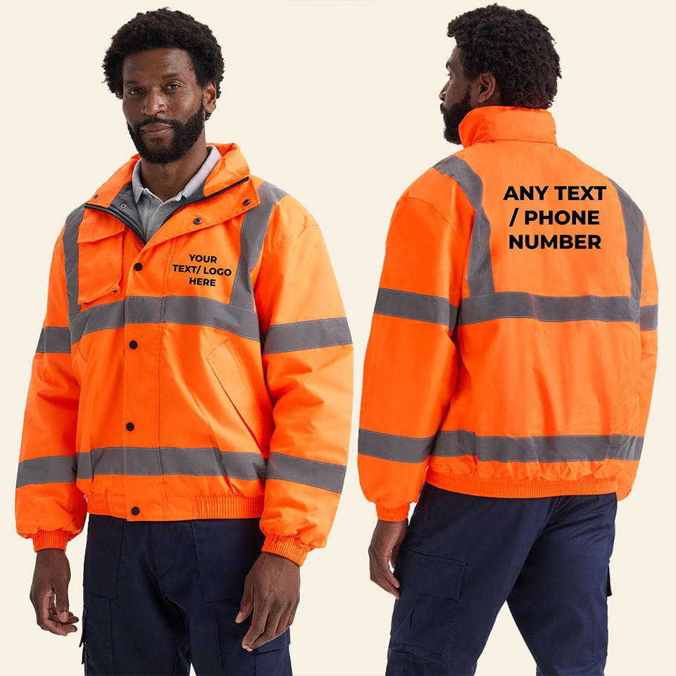 Chaquetas Bomber Impermeables y Transpirables de Microfibra Clase 3, Chaqueta con Capucha Reflectante de Seguridad de Alta Visibilidad con LED Intermitente, Logotipo Personalizable