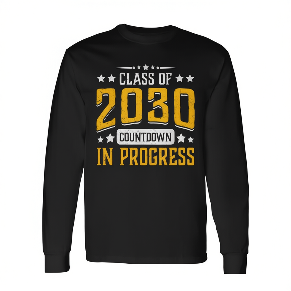 Camiseta de manga larga con estampado de la clase de 2030, cuenta regresiva en curso, Grad
