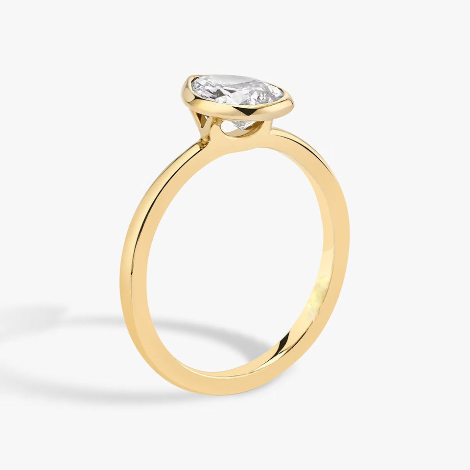 Nombre del producto:Anillo de oro solitario Bisel de diamantes en forma de pera