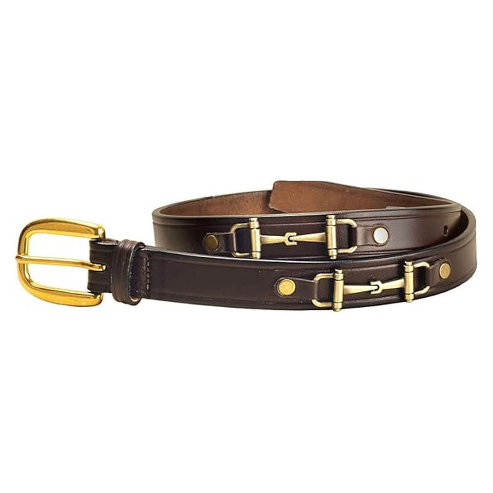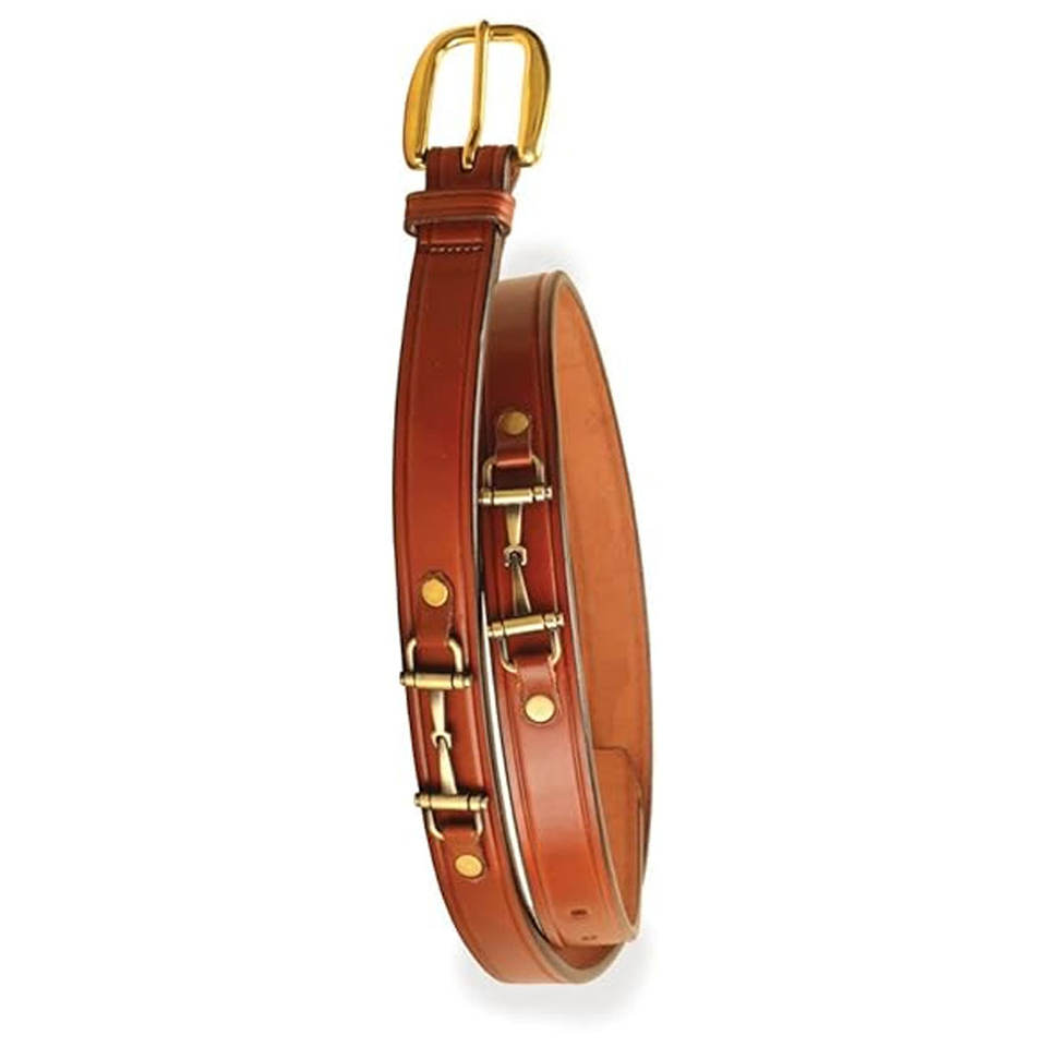 Cinturón clásico de 1 pulgada con broca de filete para estilo ecuestre, cinturón de cuero genuino, detalle de broca de caballo de latón, equitación inglesa elegante
