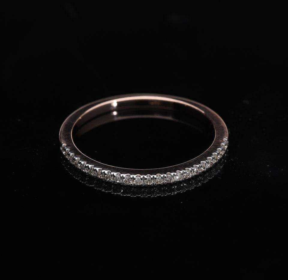 Banda de diamante apilable clásica de oro de 14 quilates con diamantes brillantes redondos naturales en un entorno de pavé delicado para una elegancia atemporal