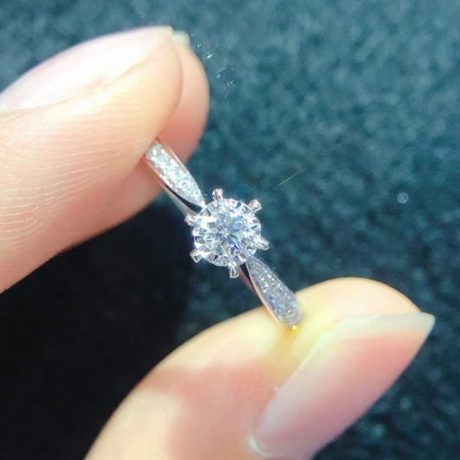 Nombre:Anillo solitario clásico de oro de 18 quilates con diamante redondo de 0.1 ct, joyería de moissanita.