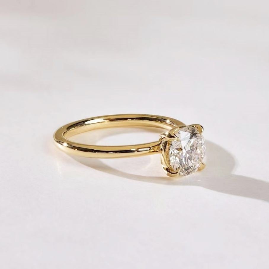 Nombre:Clásicos Anillos de Mujer de Joyería Fina en Oro Amarillo de 18K con Moissanita Redonda de 1CT