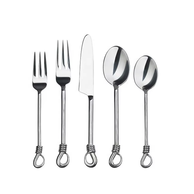 Stainless Steel Knot Flatware Set 5 Piece place settings
