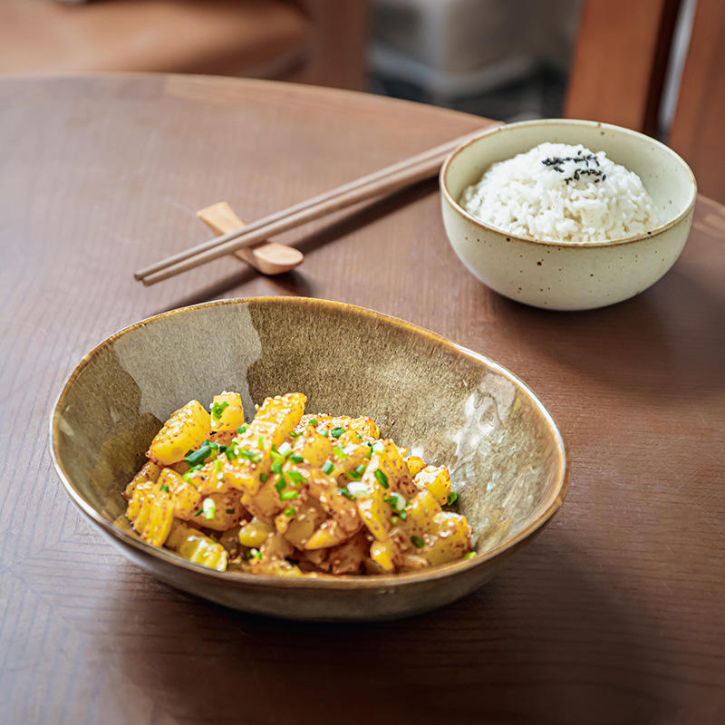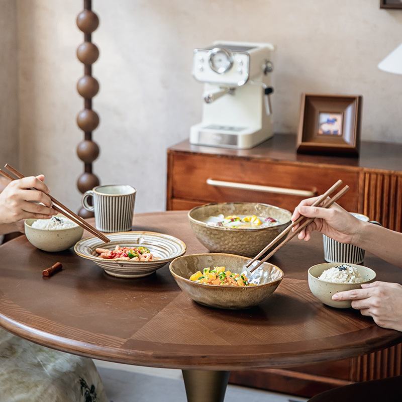 Tazón de fideos de cerámica Irregular Retro clásico de 8 pulgadas Diseño de gota de agua único para restaurante y fiesta Producto de exportación transfronterizo
