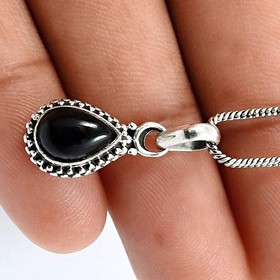 Colgante clásico de plata de ley sólida 925, colgante bohemio de diseño Retro Chapado en plata antigua de ónix negro para mujeres y niñas