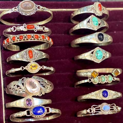 Piedra Set plata Brazaletes:Brazaletes de diseño clásico