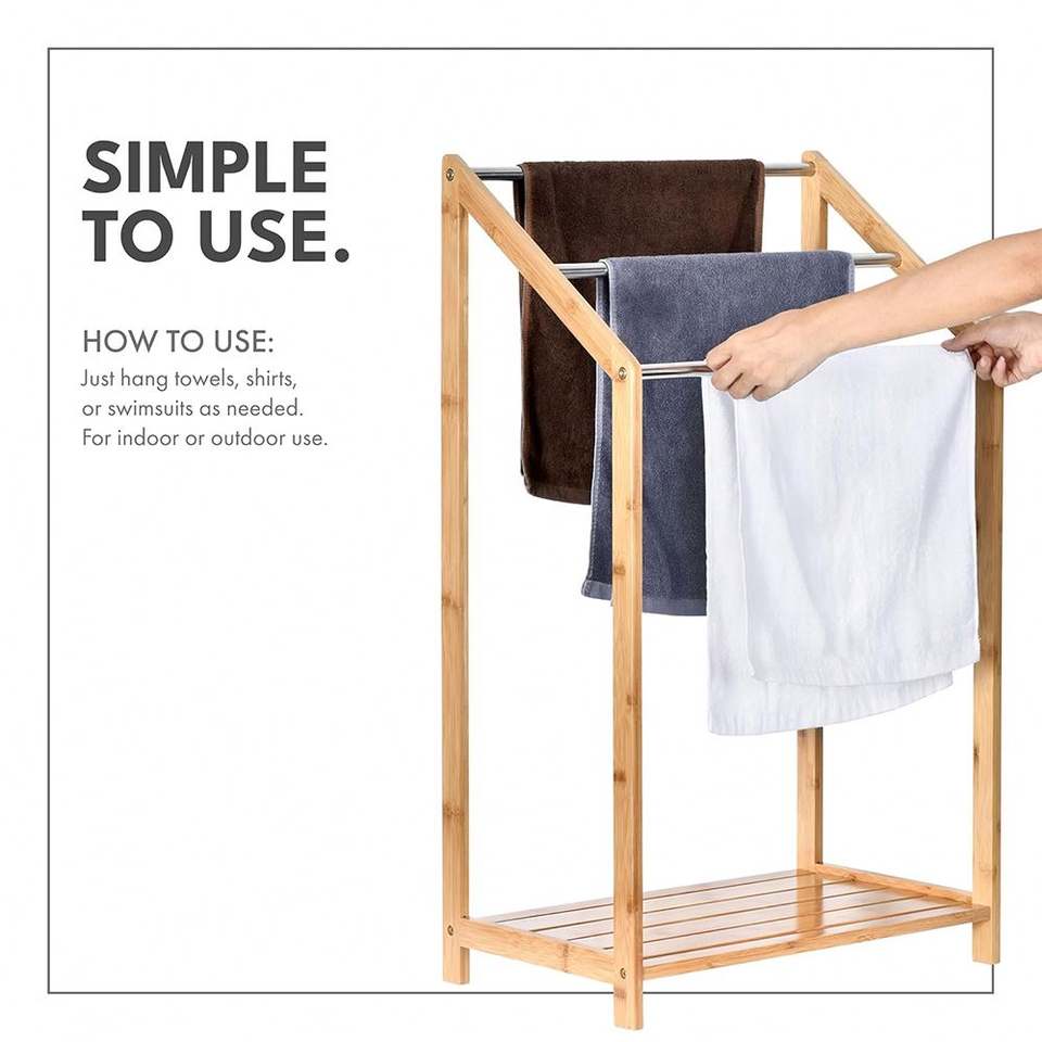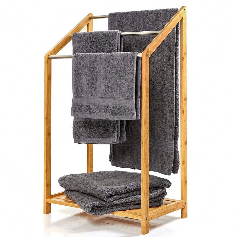 Estante Clásico de Bambú para Toallas, Soporte de Almacenamiento Independiente, Toallero de Bambú para Baño