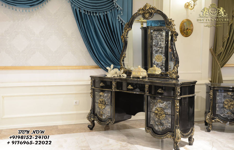 Product name:Classic Baroque Black Gold Bedroom Furniture