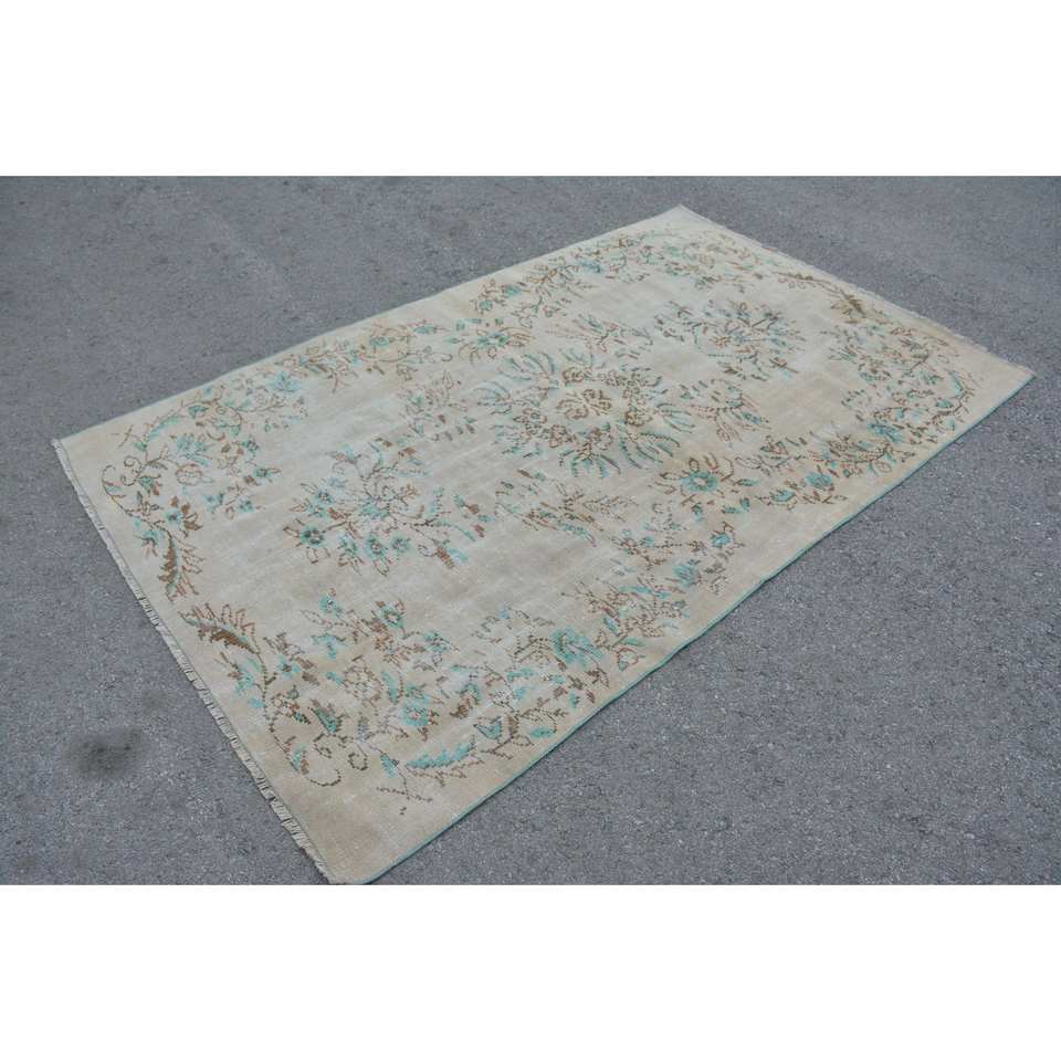 Alfombra turca clásica Beige azul Vintage 5,2X8,3 pies hecha a mano respetuosa con el medio ambiente diseño de retales de pelo medio lana Material de seda de Bambú